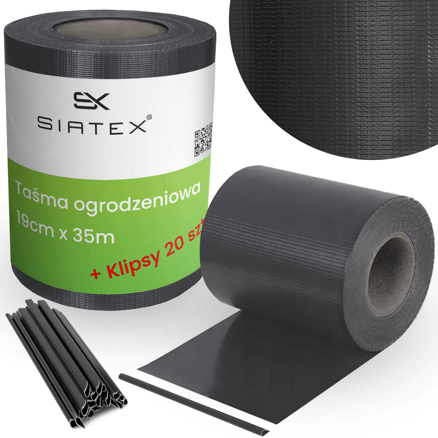 Taśma ogrodzeniowa 19 cm x 35 m + 20 klipsów, antracyt