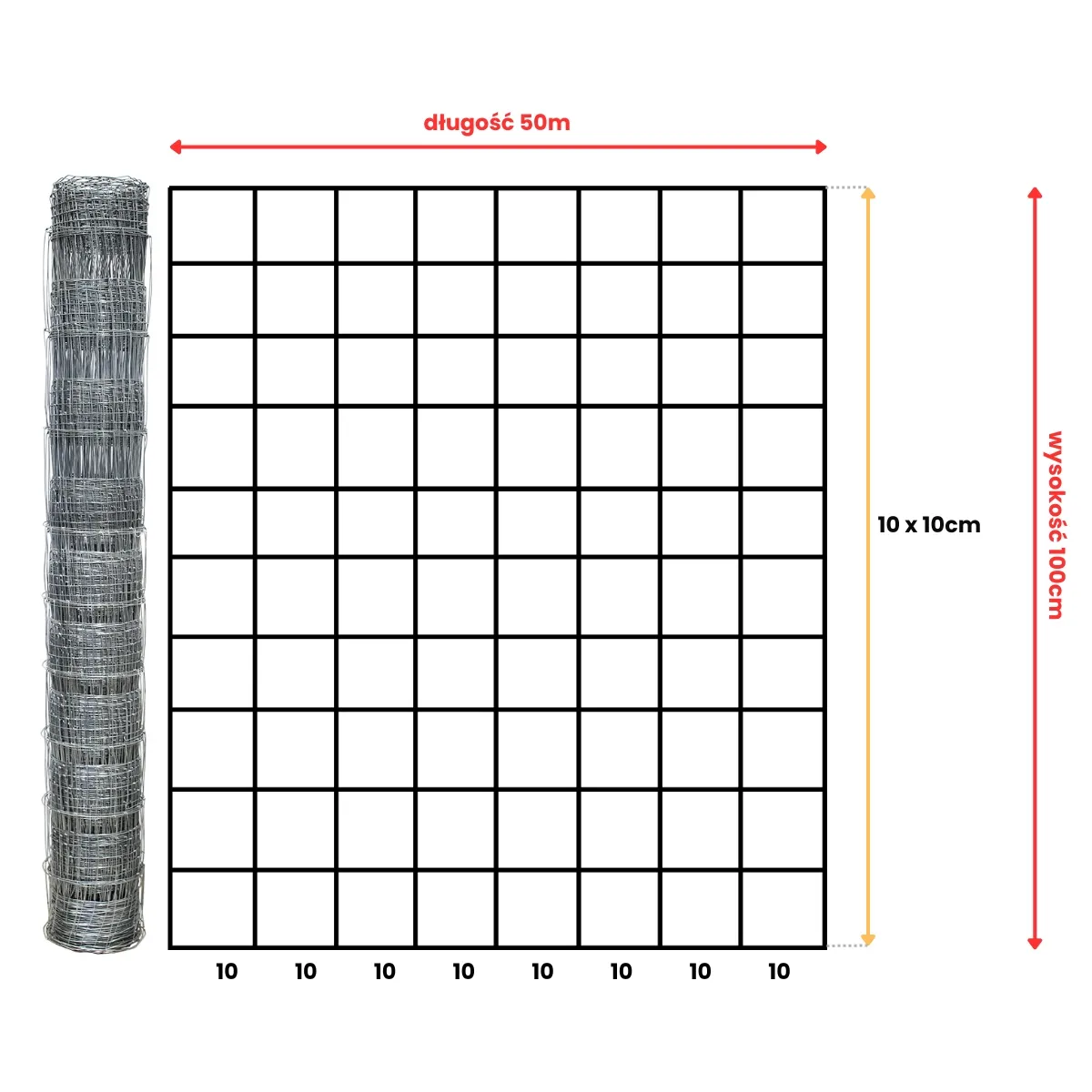 rozstaw drutów pionowych - 10 cm
