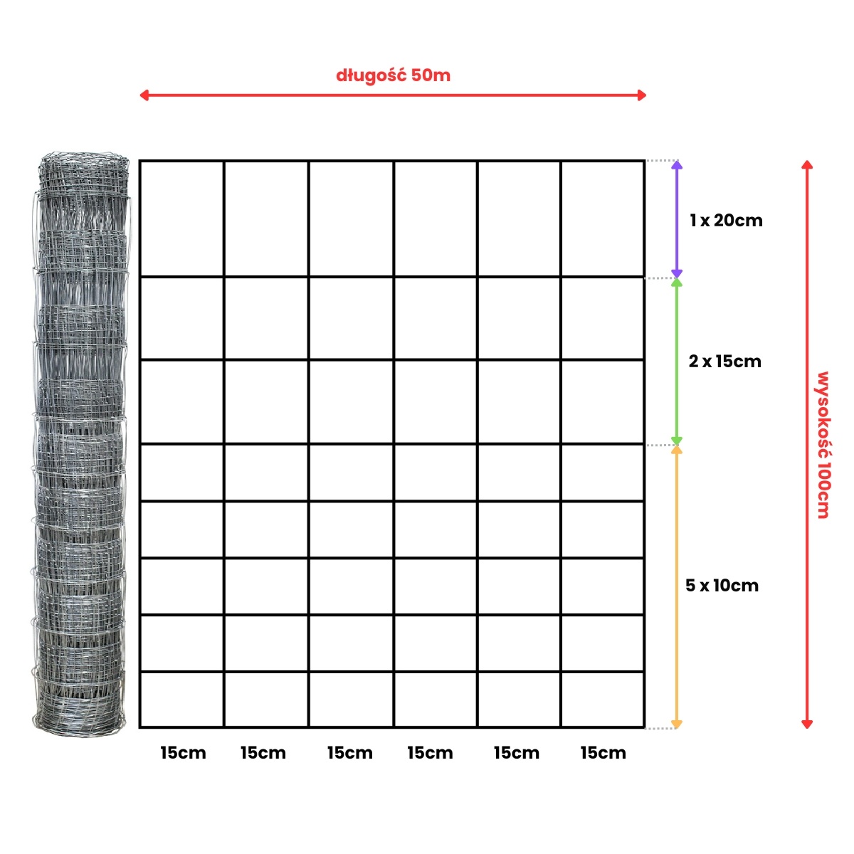 rozstaw drutów pionowych - 15 cm