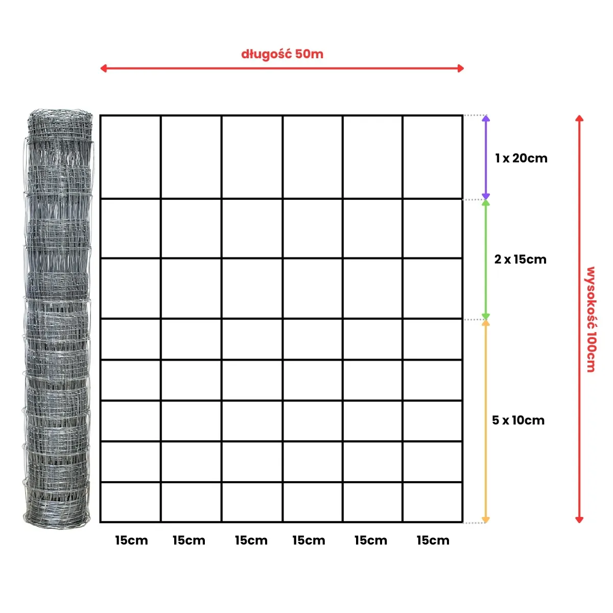 Siatka ogrodzeniowa leśna - 100/9/15 M + 100 szt. Skobli GRATIS