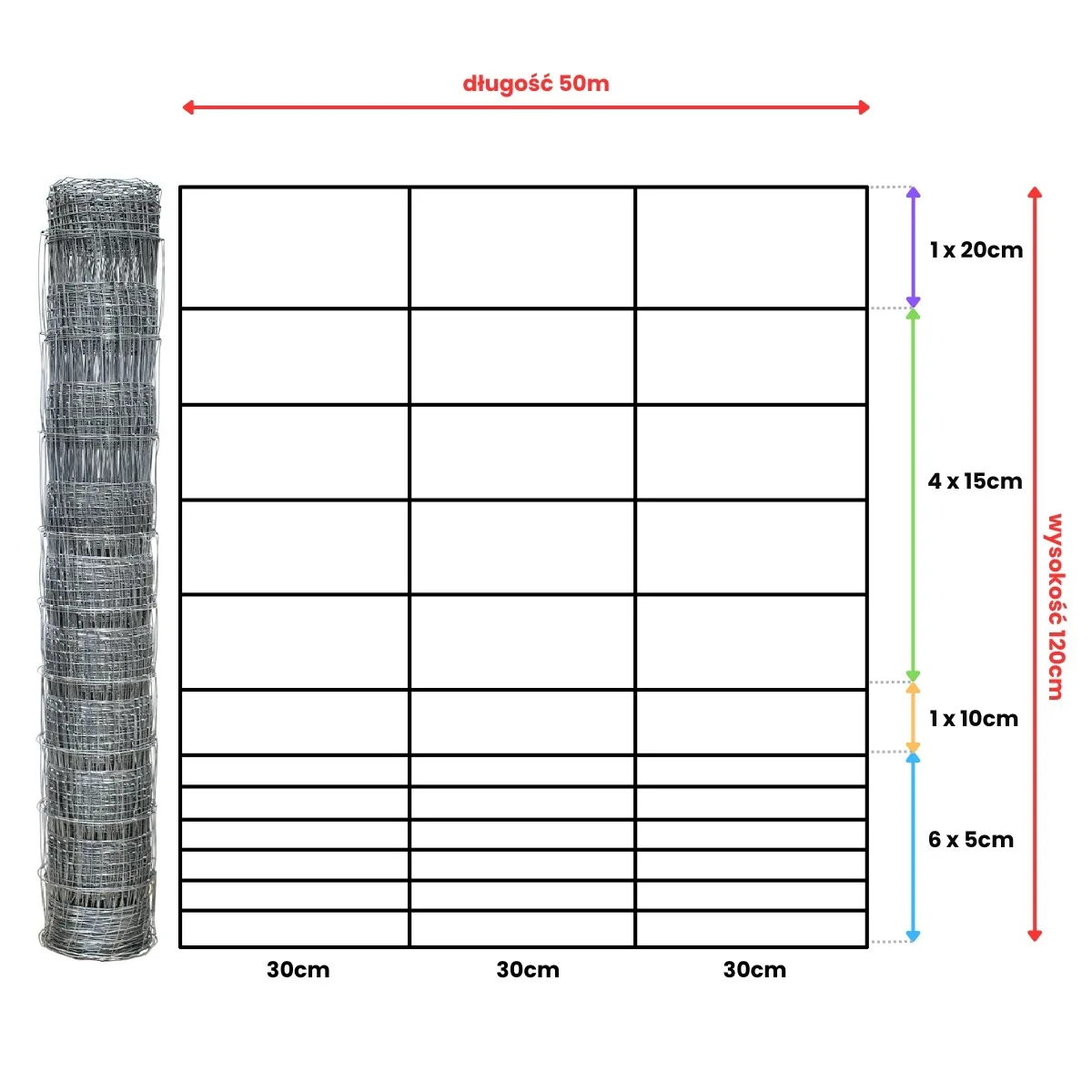 odległość drutów pionowych co 30 cm,