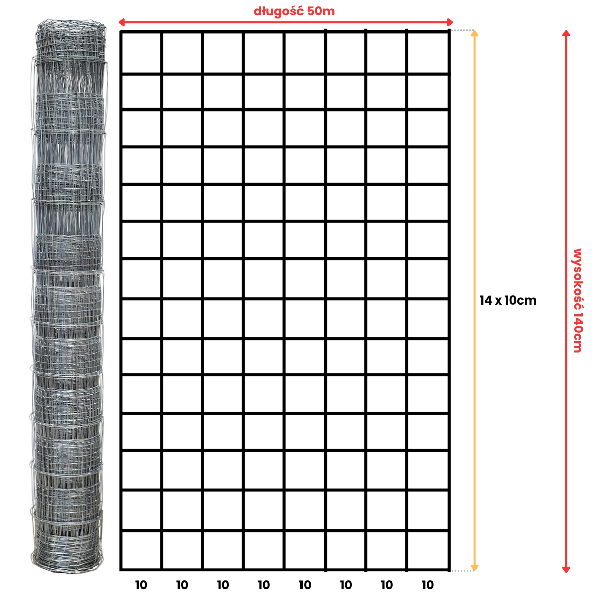 Siatka ogrodzeniowa leśna - 140/15/10 L / K10 + 100 szt. Skobli GRATIS !