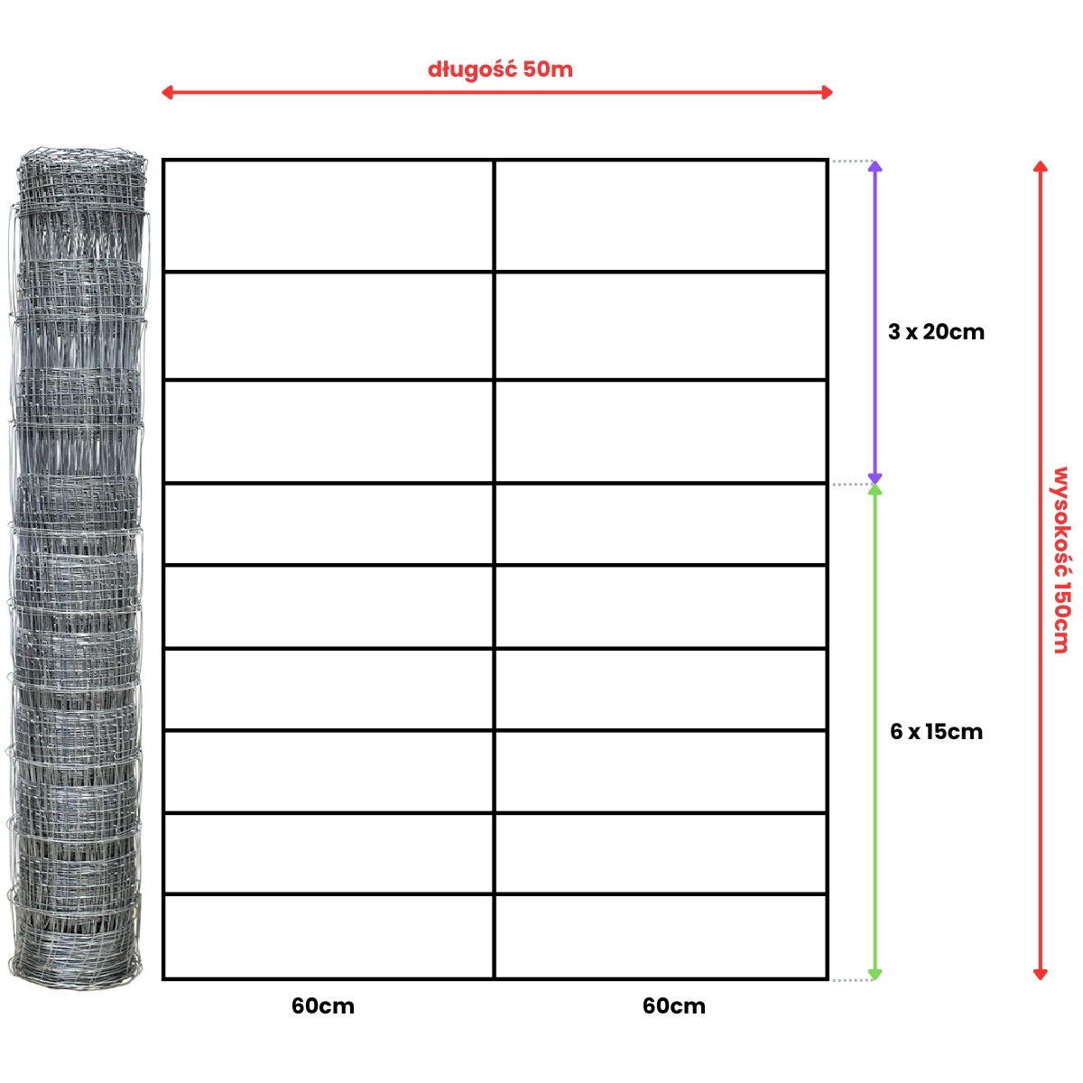 Siatka ogrodzeniowa leśna - 150/10/60 L + 100 szt. Skobli GRATIS !