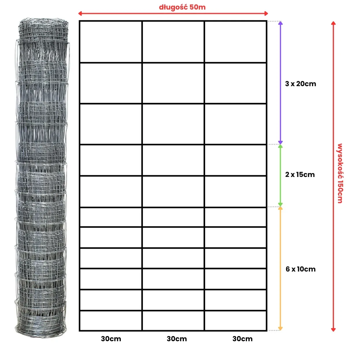 odległość drutów pionowych 30 cm,