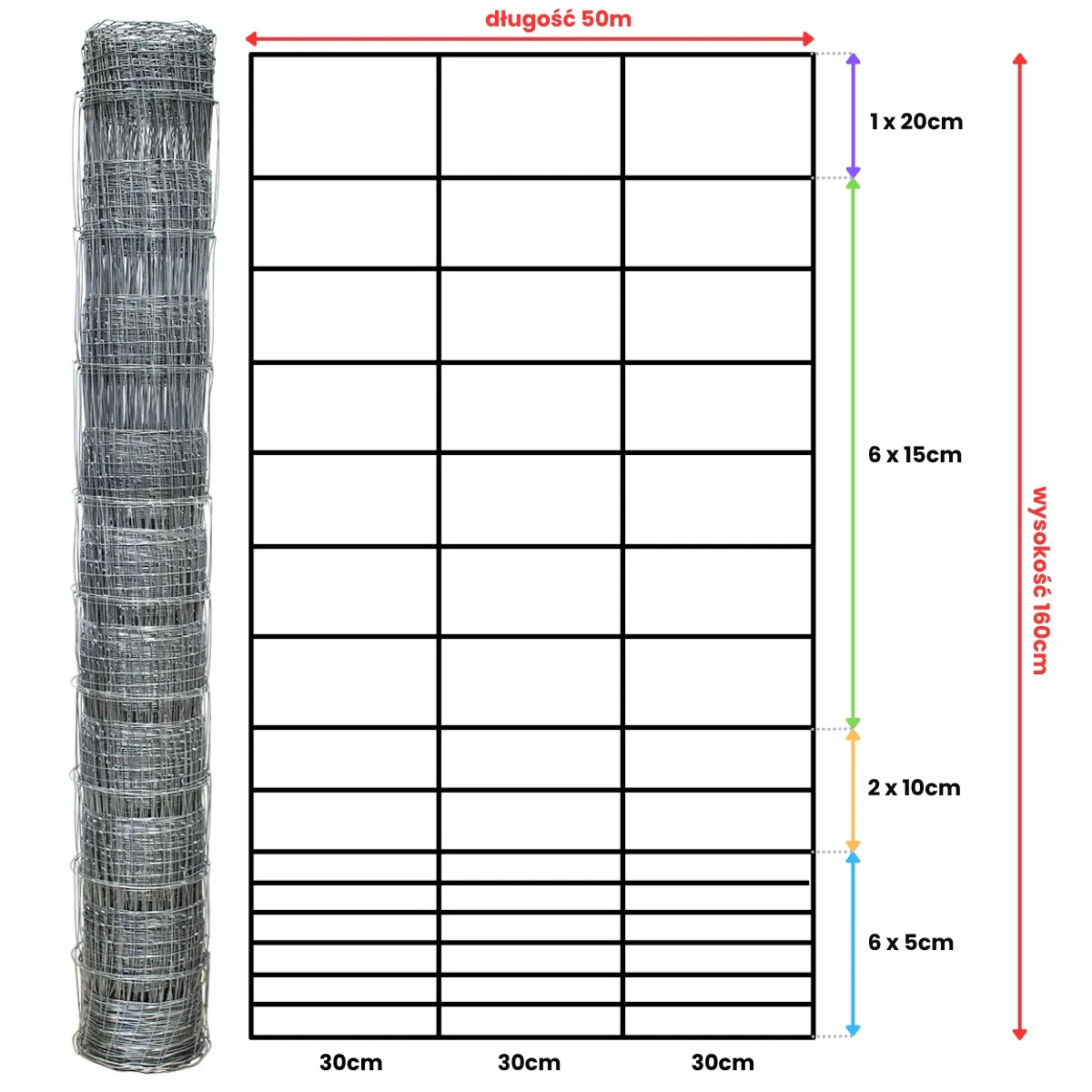 odległość drutów pionowych co 30 cm,