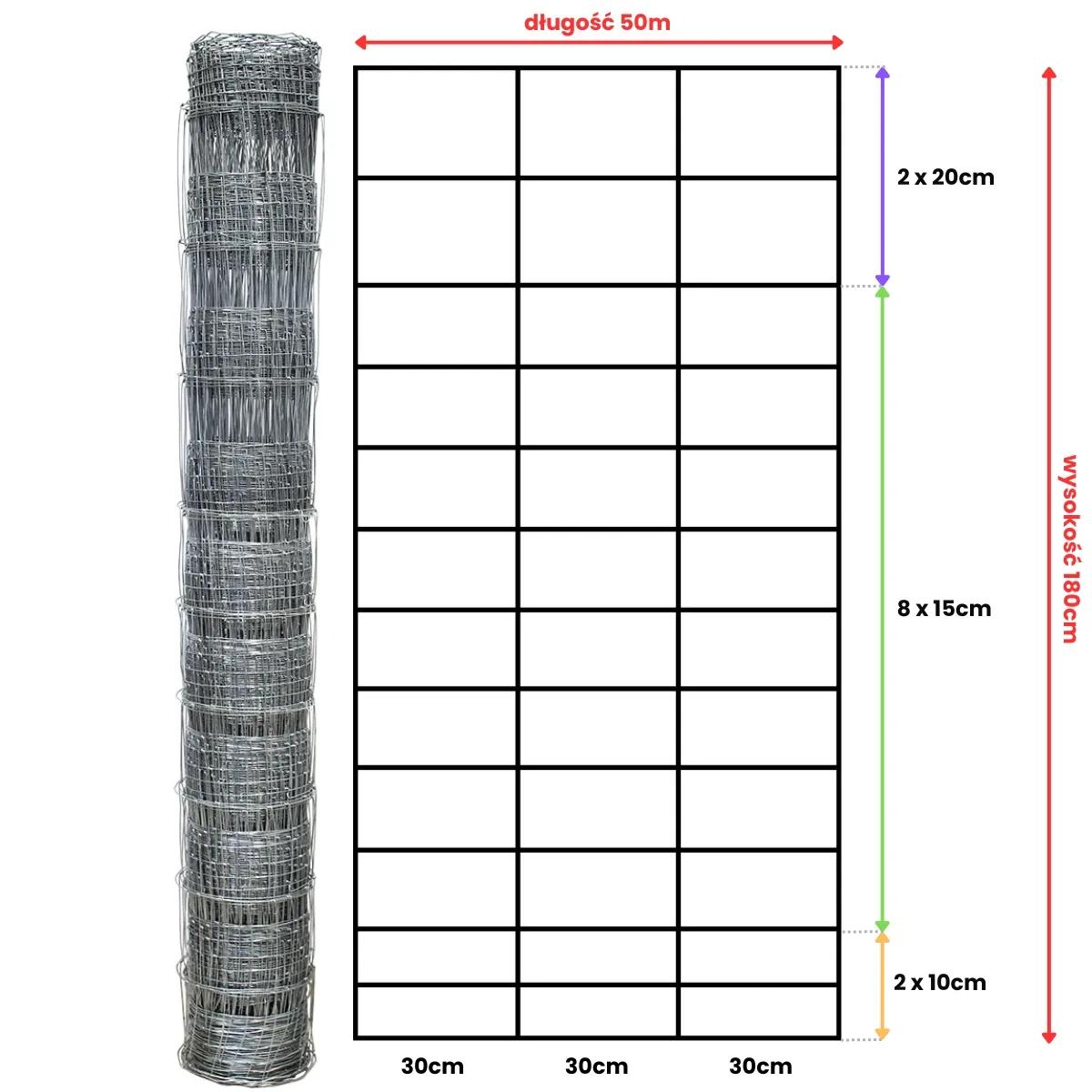 Siatka ogrodzeniowa leśna - 180/13/30 L + 100 szt. Skobli GRATIS !