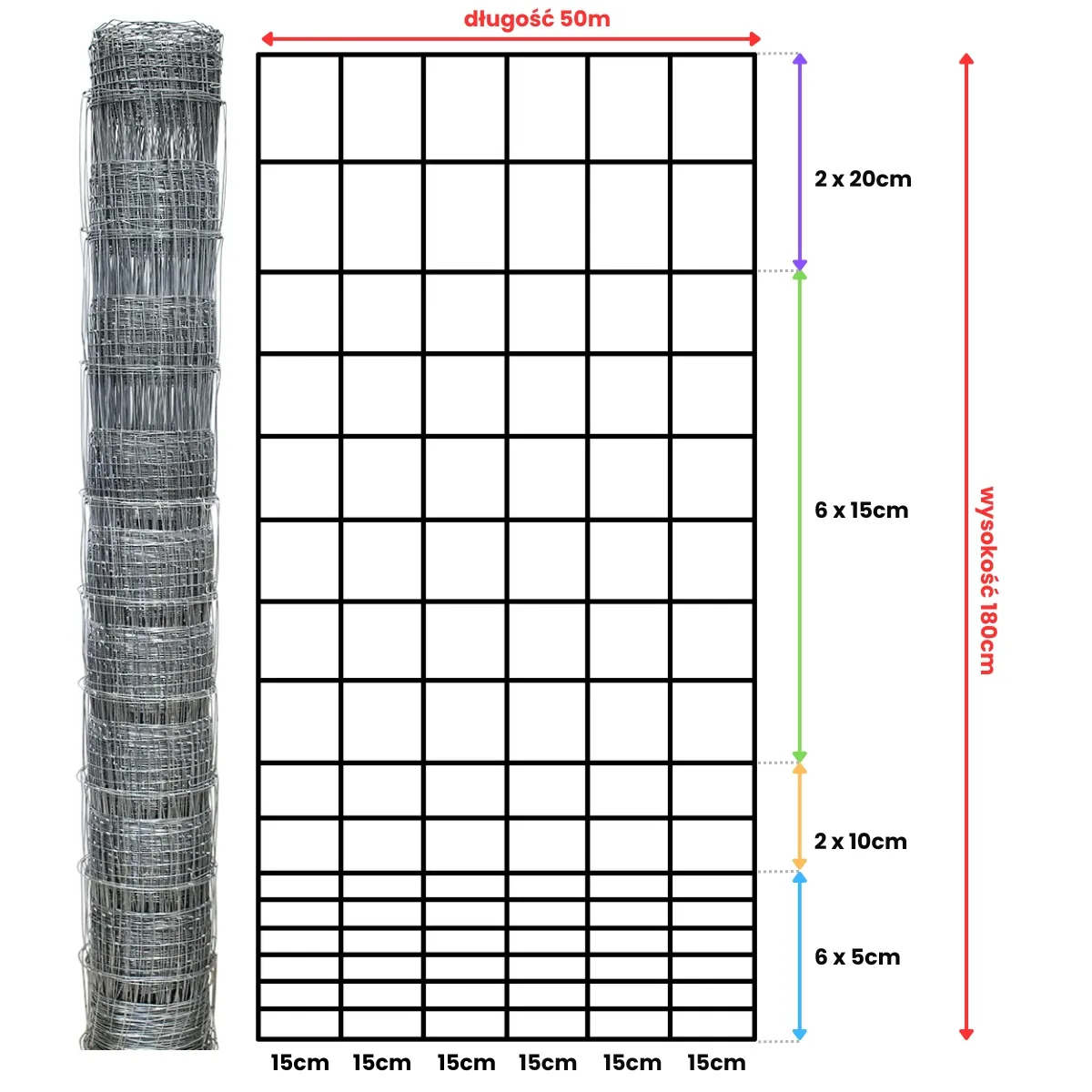 odległość drutów pionowych co 15 cm,