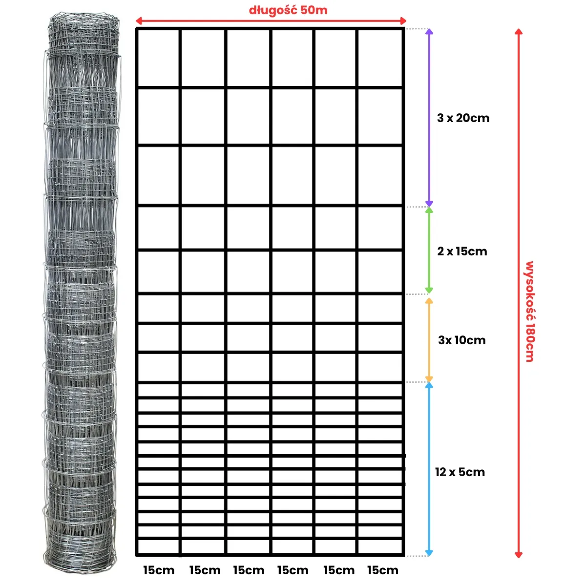 odległość drutów pionowych co 15 cm,