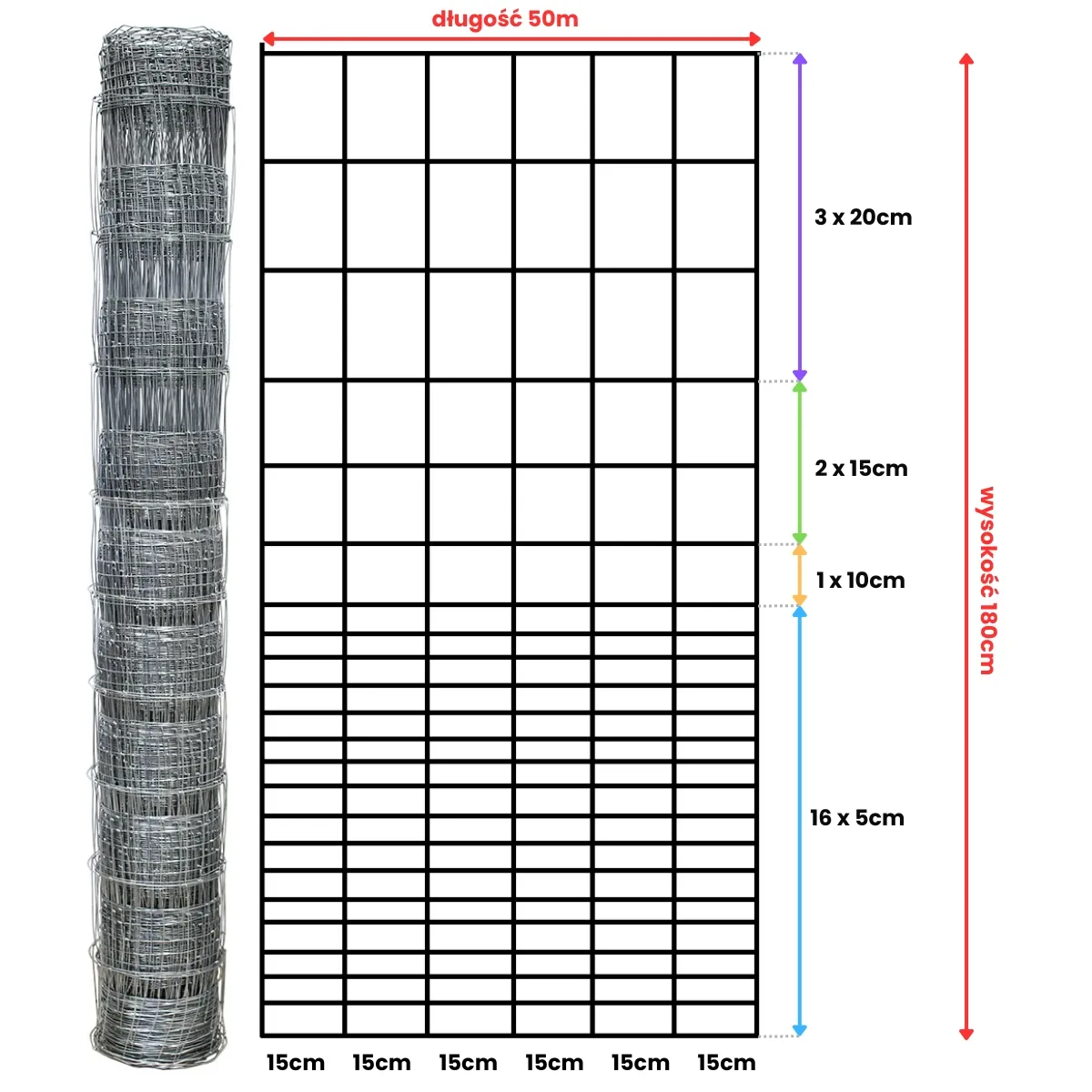 Siatka ogrodzeniowa leśna - 180/23/15 G16 + 100 szt. Skobli GRATIS !