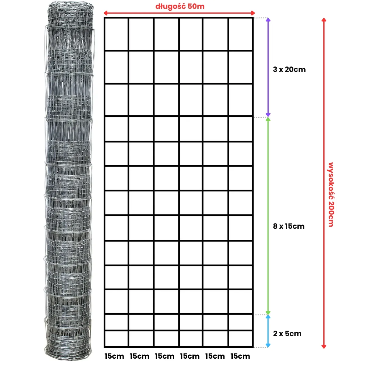 odległość drutów pionowych co 15 cm,