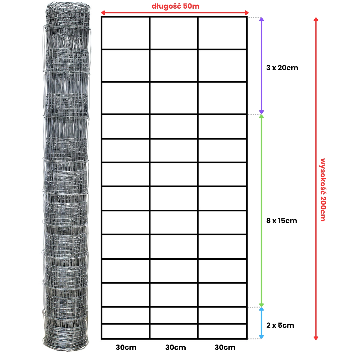 Siatka ogrodzeniowa leśna - 200/14/30 L + 100 szt. Skobli GRATIS !