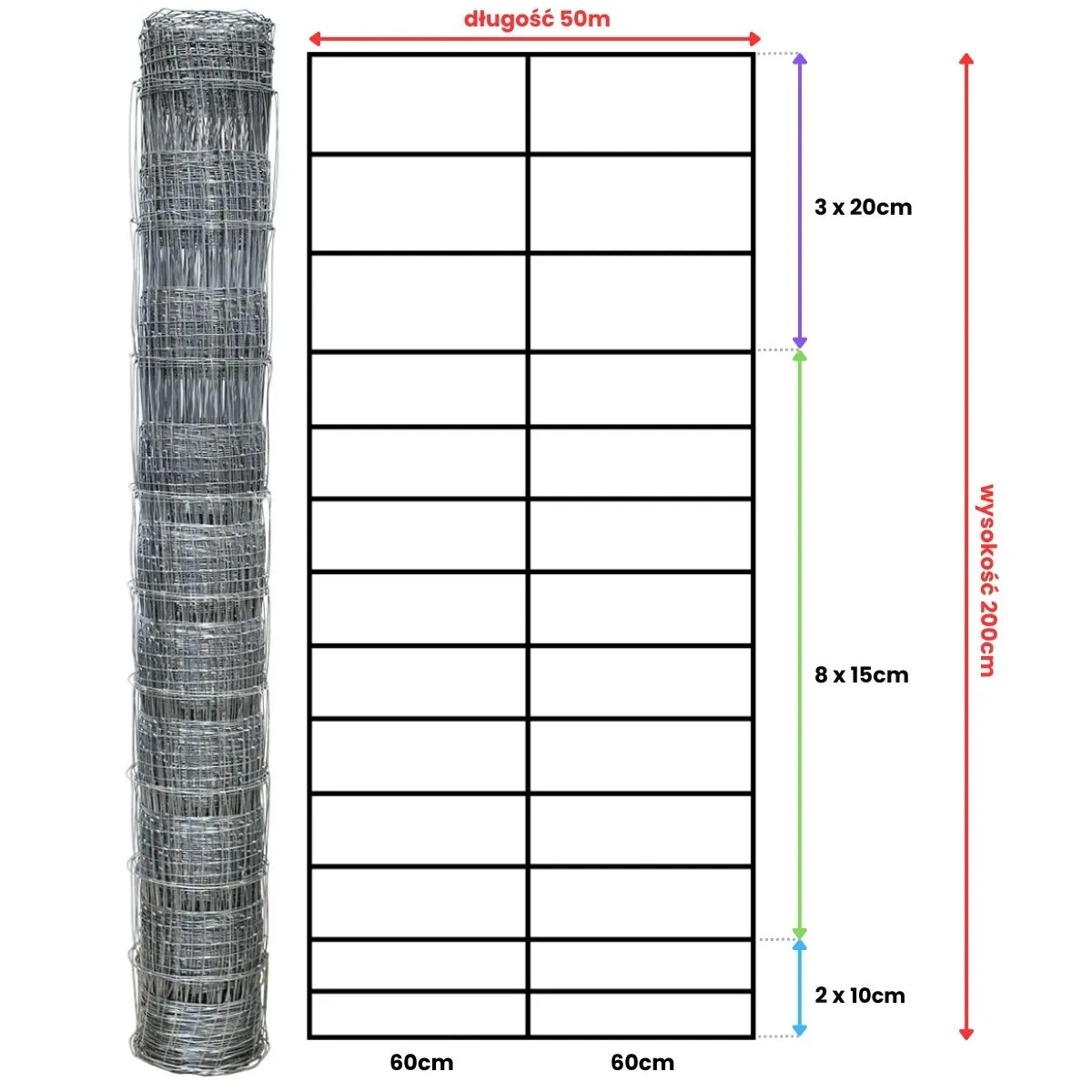 Siatka ogrodzeniowa leśna - 200/14/60 L + 100 szt. Skobli GRATIS !