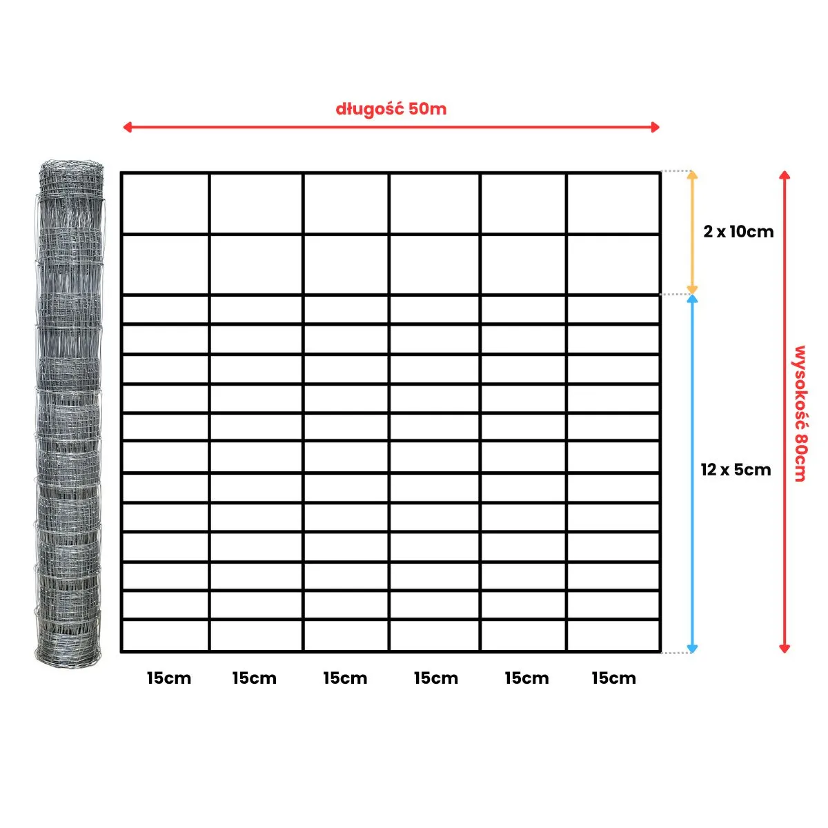 Siatka ogrodzeniowa leśna - 80/15/15 G12 + 100 szt. Skobli GRATIS !