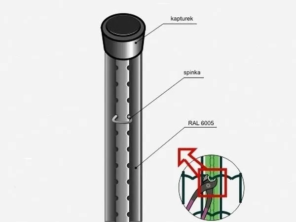 Słupki zakończone plastikową czapeczką ( nasadką , zaślepką , kapturkiem ) odporną na czynniki atmosferyczne.